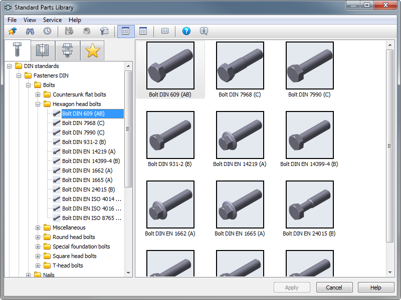 Standard Parts library contains standard parts according to DIN and ISO standards.