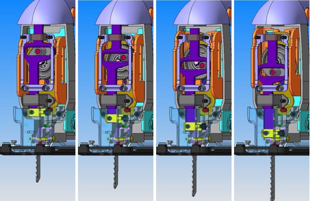 A detecção automática de colisões entre peças durante a análise de movimento ajuda a evitar erros de projeto. Estão disponíveis vários tipos e parâmetros de movimentos das peças, tais como velocidade, frequência de rotação e duração.