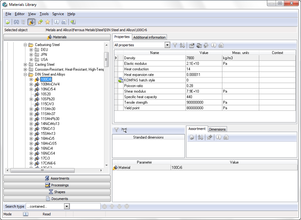 Materials library is database of information about materials that are used to manufacture products. Materials Library applies physical and mechanical material properties to 3D models designed in KOMPAS-3D.
